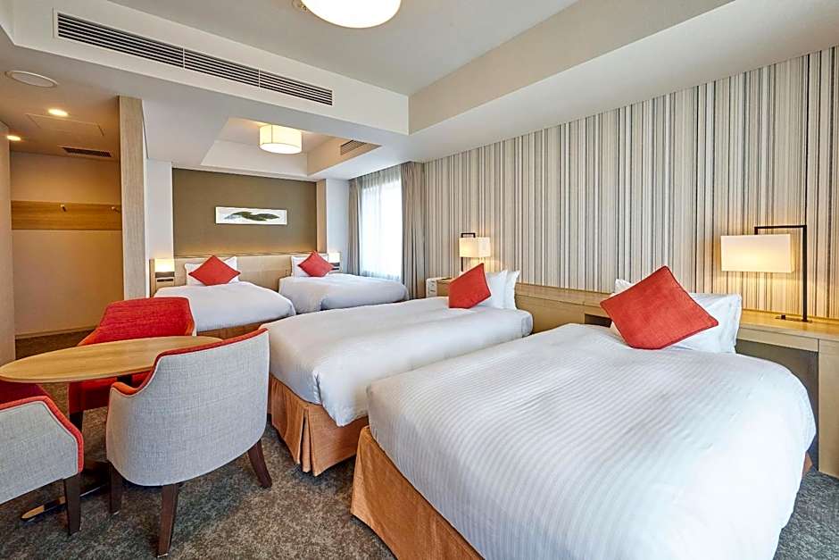 Featuring free toiletries, this triple room includes a private bathroom with a bath, a shower and a hairdryer. The triple room has tatami floors, a seating area with a flat-screen TV with satellite channels, air conditioning, a safe deposit box, as well as an electric kettle. The unit has 3 futons.
